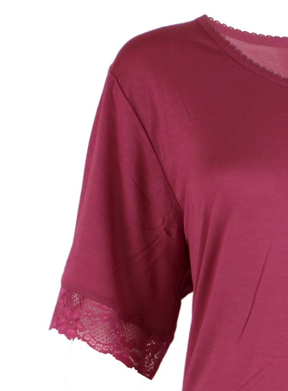 Nattlinne bambu med spets vinröd